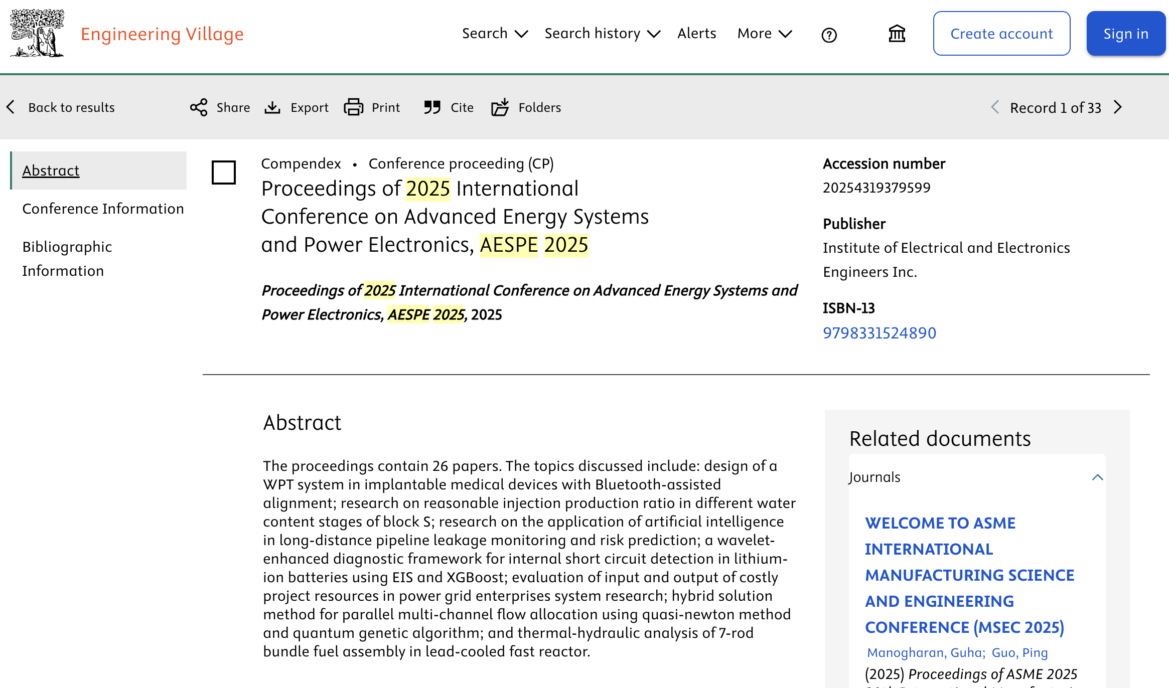 2025 International Conference on Advanced Energy Systems and Power Electronics (AESPE2025) was successfully held from June 13 to 15, 2025, at the Wenxi Campus of Hangzhou Dianzi University in Hangzhou, China, in the First Meeting Room on the third floor of the Administration Building. Hosted by Hangzhou Dianzi University, the conference attracted over a hundred experts and scholars. It facilitated in-depth discussions on research areas such as advanced energy systems, smart grid technologies, power electronics technologies and applications, intelligent energy and power systems, and the Energy Internet of Things (IoT).